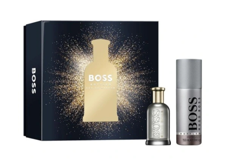Zestaw dla mężczyzn Bottled od marki Hugo Boss, w skład którego wchodzi woda perfumowana 50ml oraz dezodorant w sprayu 150ml.