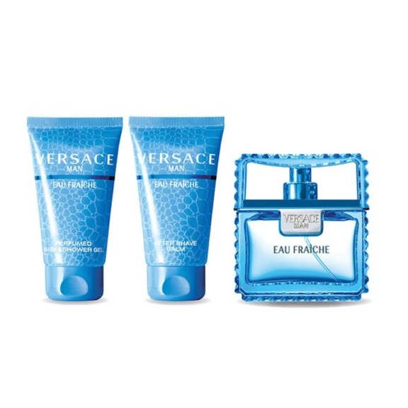 Zestaw upominkowy Versace Eau Fraiche, w skład którego wchodzi woda toaletowa 50 ml, balsam po goleniu oraz perfumowany żel pod prysznic 50 ml. Ten zestaw upominkowy sprawi, że każdy mężczyzna poczuje się naprawdę wyjątkowo.